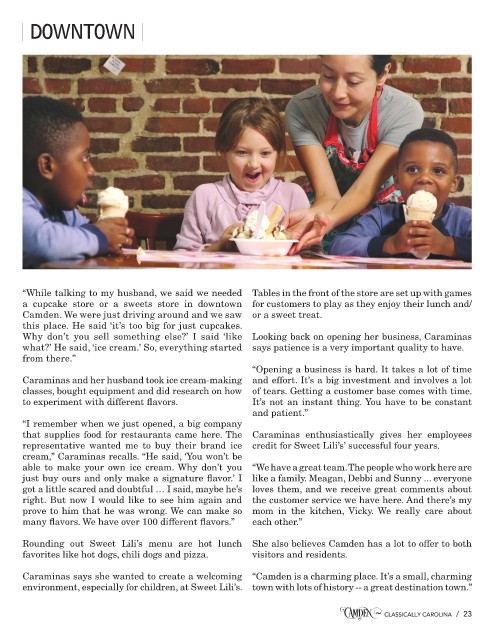environment, especially for children, at Sweet Lili’s. town with lots of history -- a great destination town.”