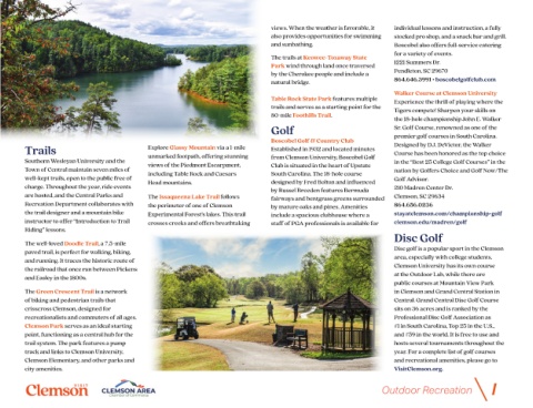 are hosted, and the Central Parks and The Issaqueena Lake Trail follows fairways and bentgrass greens surrounded Clemson, SC 29634