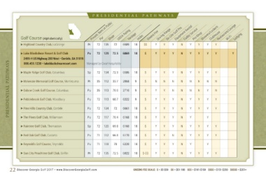 PRESIDENTIAL PATHWAYS Mckenzie Memorial Golf Course, Montezuma Pr 35 112 33.7 2868 9 9 9 $ $ $ N Y Y N Y Y N N Y N N N N N Y N N Y N Y Y N N Y hole in Georgia” and named “4th public options in the Macon area as HISTORIC HEARTLAND