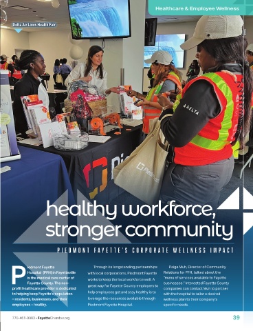Hospital (PFH) in Fayetteville with local corporations, Piedmont Fayette Relations for PFH, talked about the