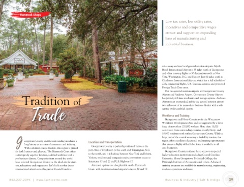 With a distinct coastal lifestyle, this region is primed Georgetown County is perfectly positioned between the that ensure a highly skilled labor force is available to all