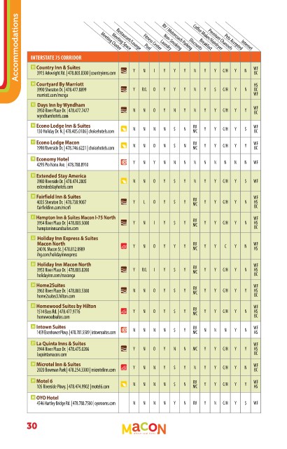 Accommodations INTERSTATE 75 CORRIDOR Meeting Cluster Fitness Center Laundry Discounts Premium Channels Internet