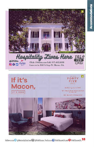 Accommodations 1 4 34 Follow us on @MaconGaSoul and @VisitMacon. Find us on VisitMaconGA and VisitMaconGA. 35