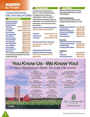 Town of Elloree ............................(803) 897-2821 • Moncks Corner ..........................(843) 719-4056 Tri-County Electric ..................... (803) 874-1215