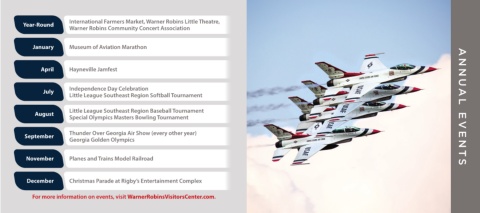 For more information on events, visit WarnerRobinsVisitorsCenter.com.