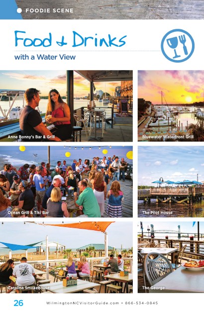 FOODIE SCENE Food & Drinks with a Water View Anne Bonny’s Bar & Grill Bluewater Waterfront Grill Ocean Grill & Tiki Bar The Pilot House Carolina Smokehouse The George 26 W ilmingt onNC V isit orGuide . c om • 866-5 34-0845