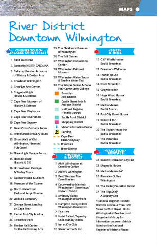 33. Wilmington Wilmington/Porters Neck Golf & Resort 3 mi. Park 421 to Carolina Beach 1,000 ft 23. Riverfront Park Collection by Hilton information on seven districts